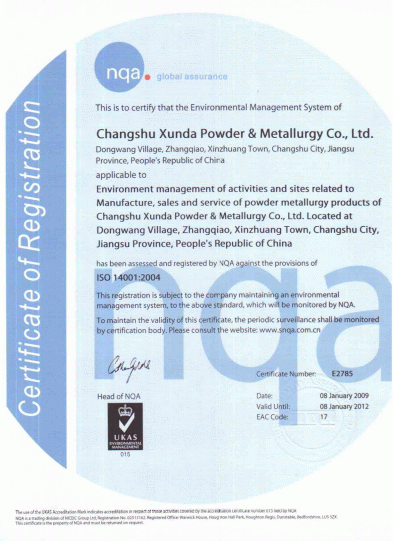 关于常熟市迅达粉末冶金有限公司简介:公司始建于1992年6月,总资产达8000余万元,其中设备资产3500余万元,占地面积20000平方米,建筑面积近15000平方米,拥有60多台3-1000T的成形机、各类精整机、烧结炉、CNC全自动数控加工设备及各类专用设备200余台(套)。公司于2008年通过TS16949与ISO14001认证,目前已完成体系升级。